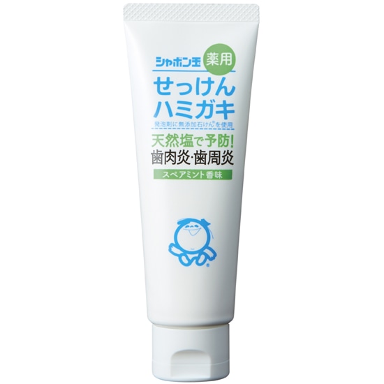 無添加石けんベースで、合成界面活性剤や防腐剤を使わず、お口に優しく、使用後に味覚をそこなわないという従来のせっけんハミガキの良さはそのままに、有効成分の「天然塩」が歯ぐきをひきしめ、歯肉炎・歯周炎を防ぎ、口臭も予防します。